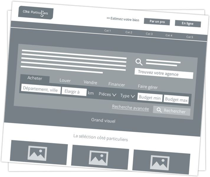 Le portail Côté Particuliers dispose d'une structure assez vaste. Il s'adresse à différentes cibles que ce soit les acheteurs, vendeurs potentiels, futurs franchisés et franchisés actuels du réseau.