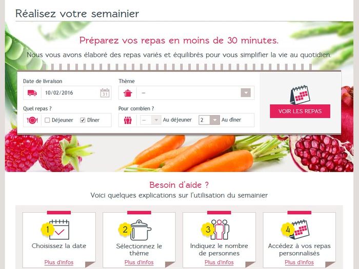 L’outil permet surtout, une fois la commande passée, de recevoir le planning des repas de la semaine mais aussi le détail des recettes sous forme de fiches.